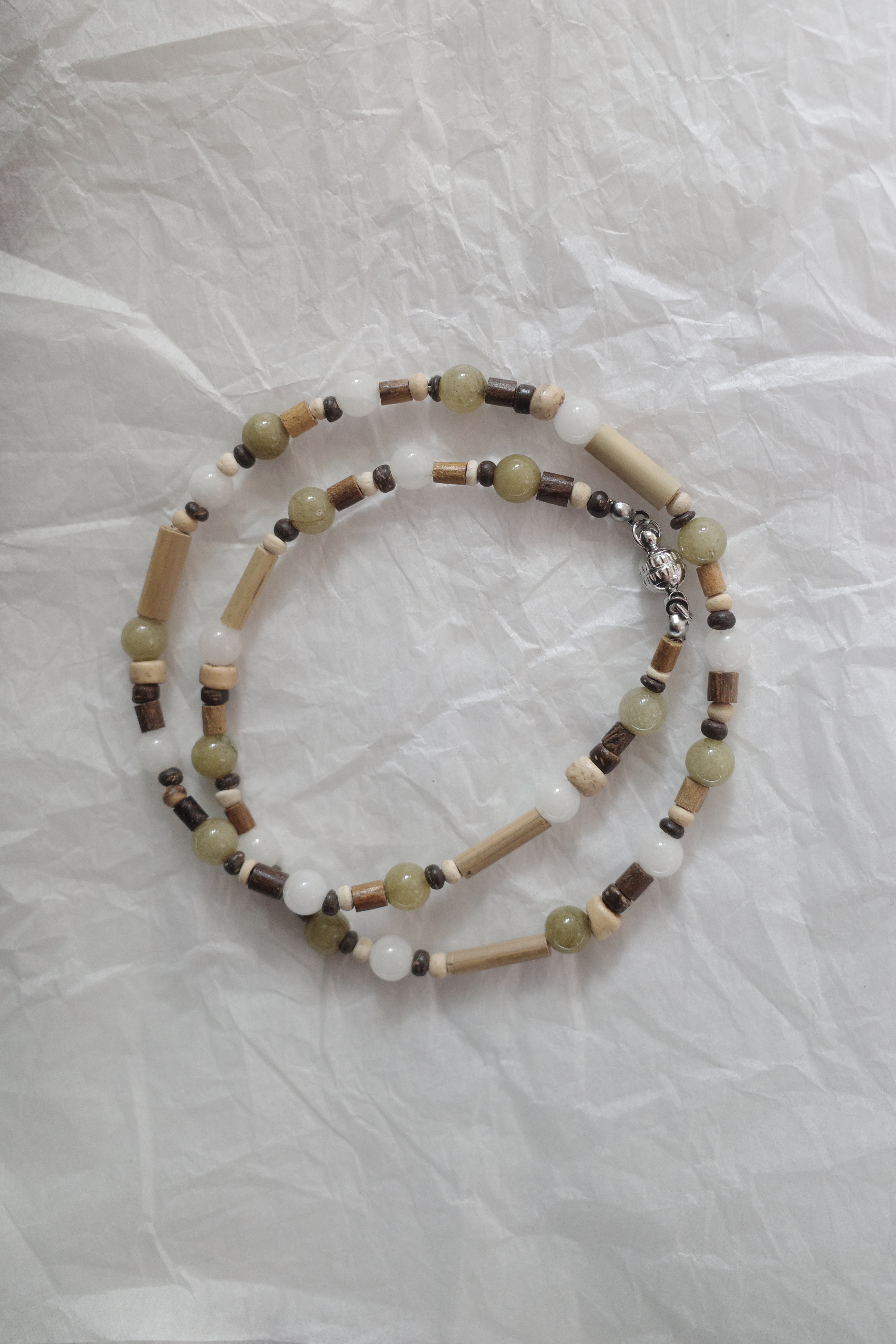 우드비즈 + 원석 + 마감장식(써지컬 소재) 길이 : 마감장식 제외 약 41.3 - 5cm