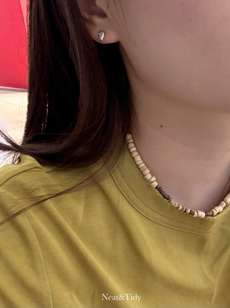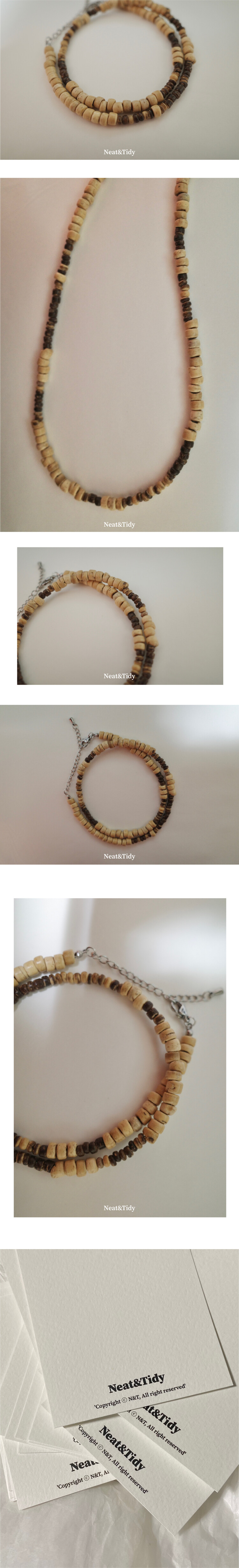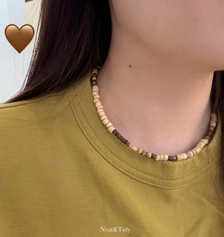 은은한 베이지와 딥 브라운의 3가지 우드비즈를 조합하여 심플하면서도 세련된 무드를 담은 목걸이입니다.